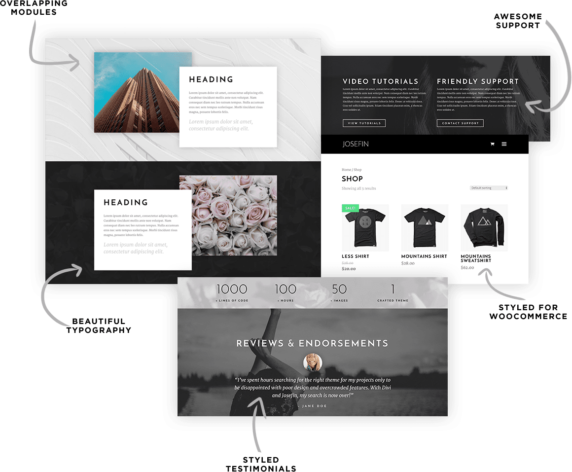 Finally, a clean & modern Divi Child Theme using great typography and imagery. Josefin is class all the way.